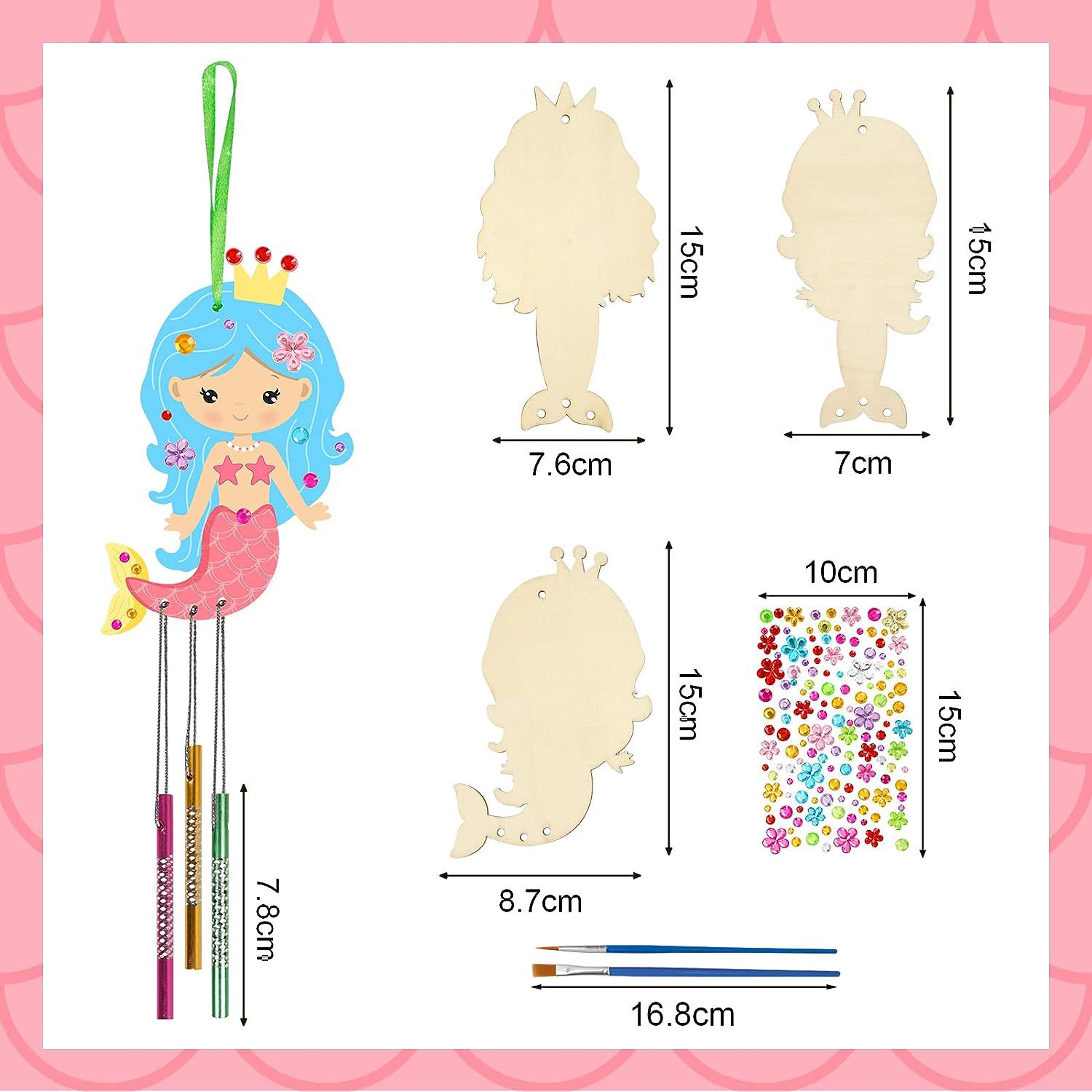 mermaid 9 pieces +27 wind chimes + brush 2 pieces + stickers + lines