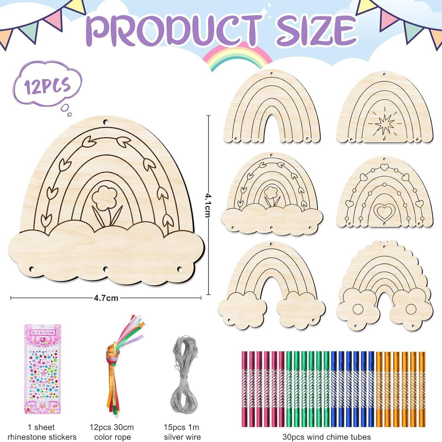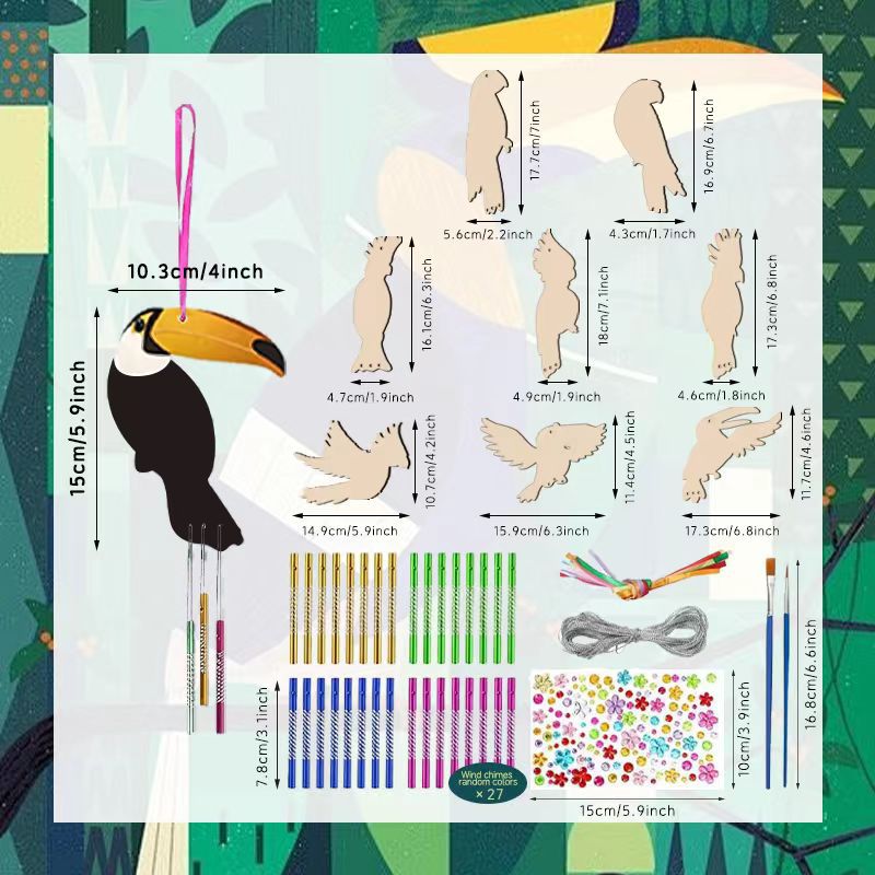 firebird-12 wood piece flamingo + wind chimes tube 24 + lines +2 pens + diamond sticker