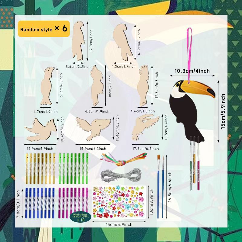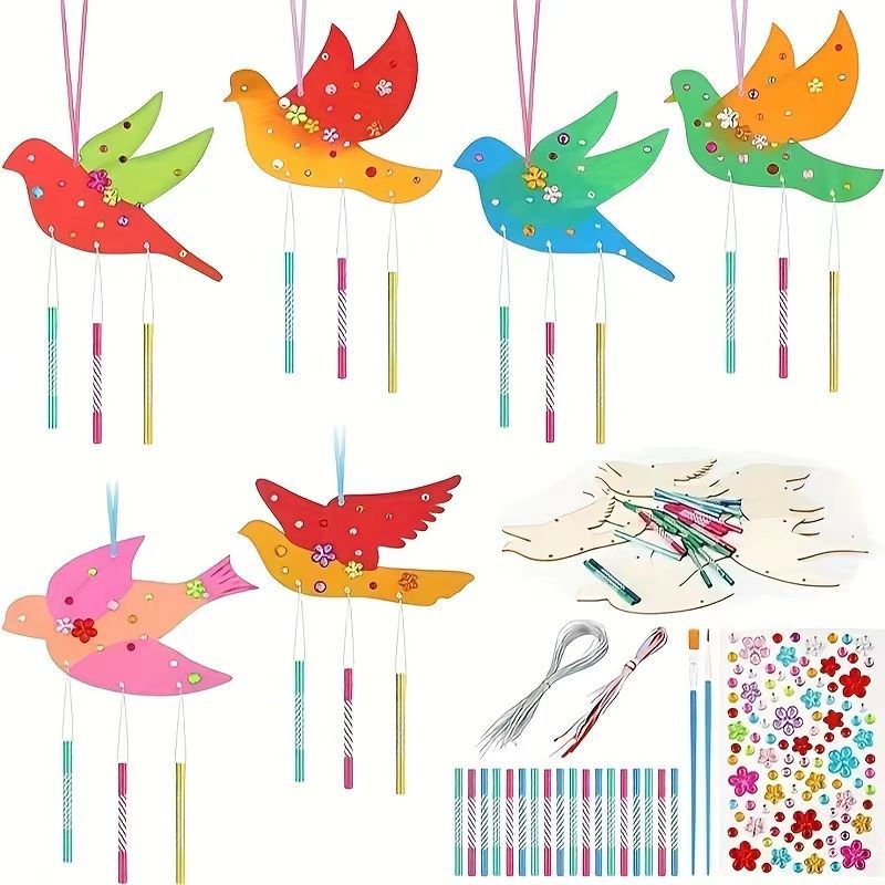 bird-10 pieces +40 wind chimes rod + drill stickers + line