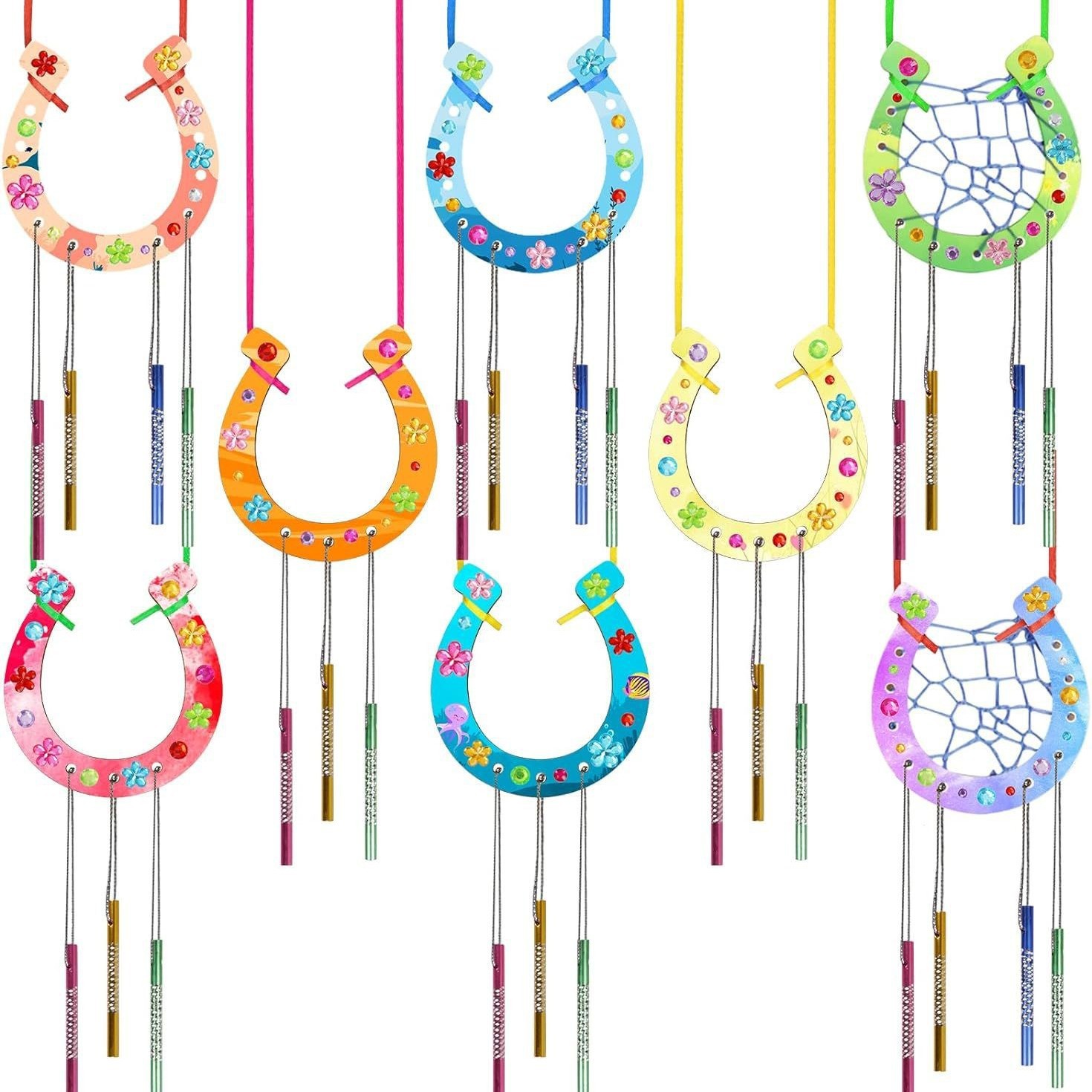 new horseshoe 6 pieces +18 wind chimes + silver string + diamond + two pens