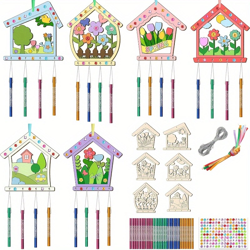 firebird-6 wood piece flamingo + wind chimes tube 12 pieces, line +2 pens + diamond sticker