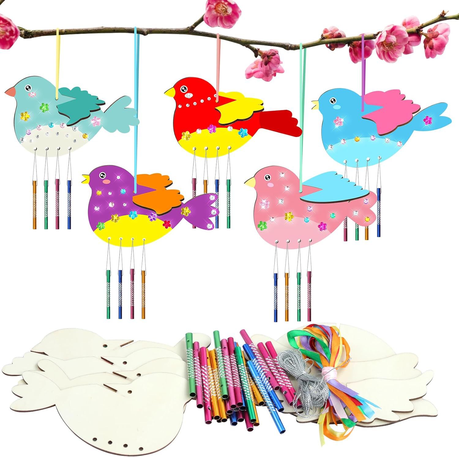 bird-5 pieces +20 wind chimes + diamond sticker + lines