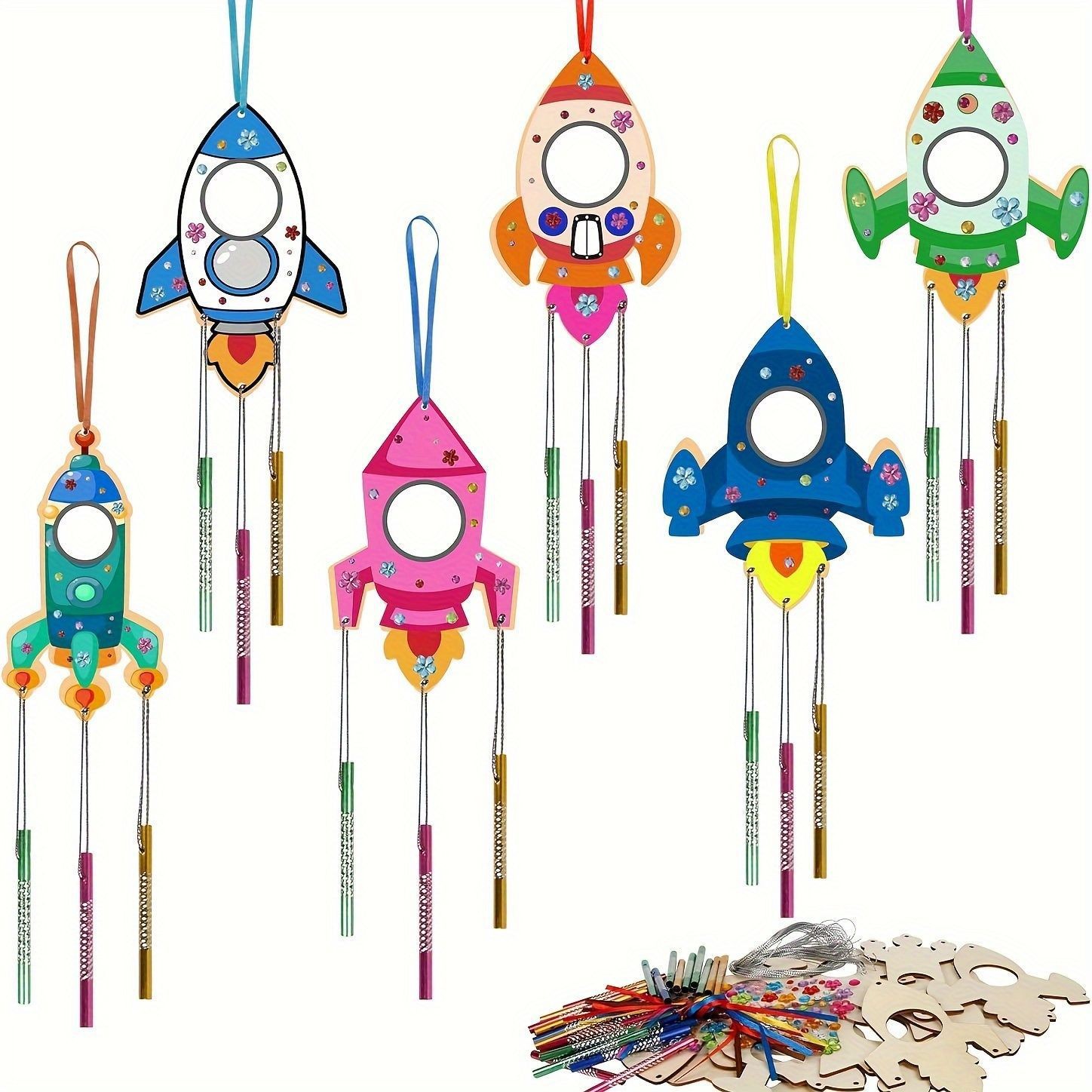 rocket-6 rockets +18 wind chimes + silver string + drill + two pens