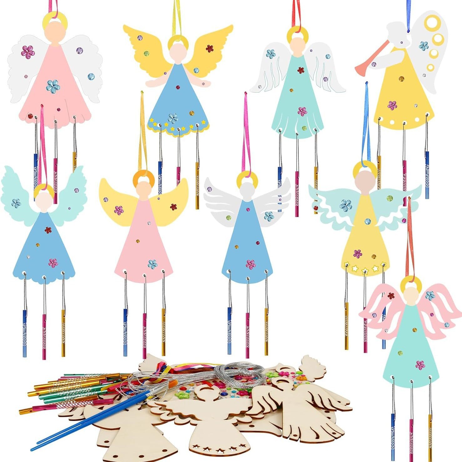 angel-6 pieces random style +18 wind chimes + silver string + diamond + two pens