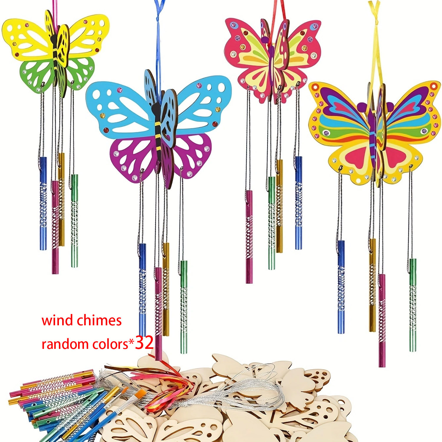 new butterfly-8 random styles +32 wind chimes + silver string + diamonds