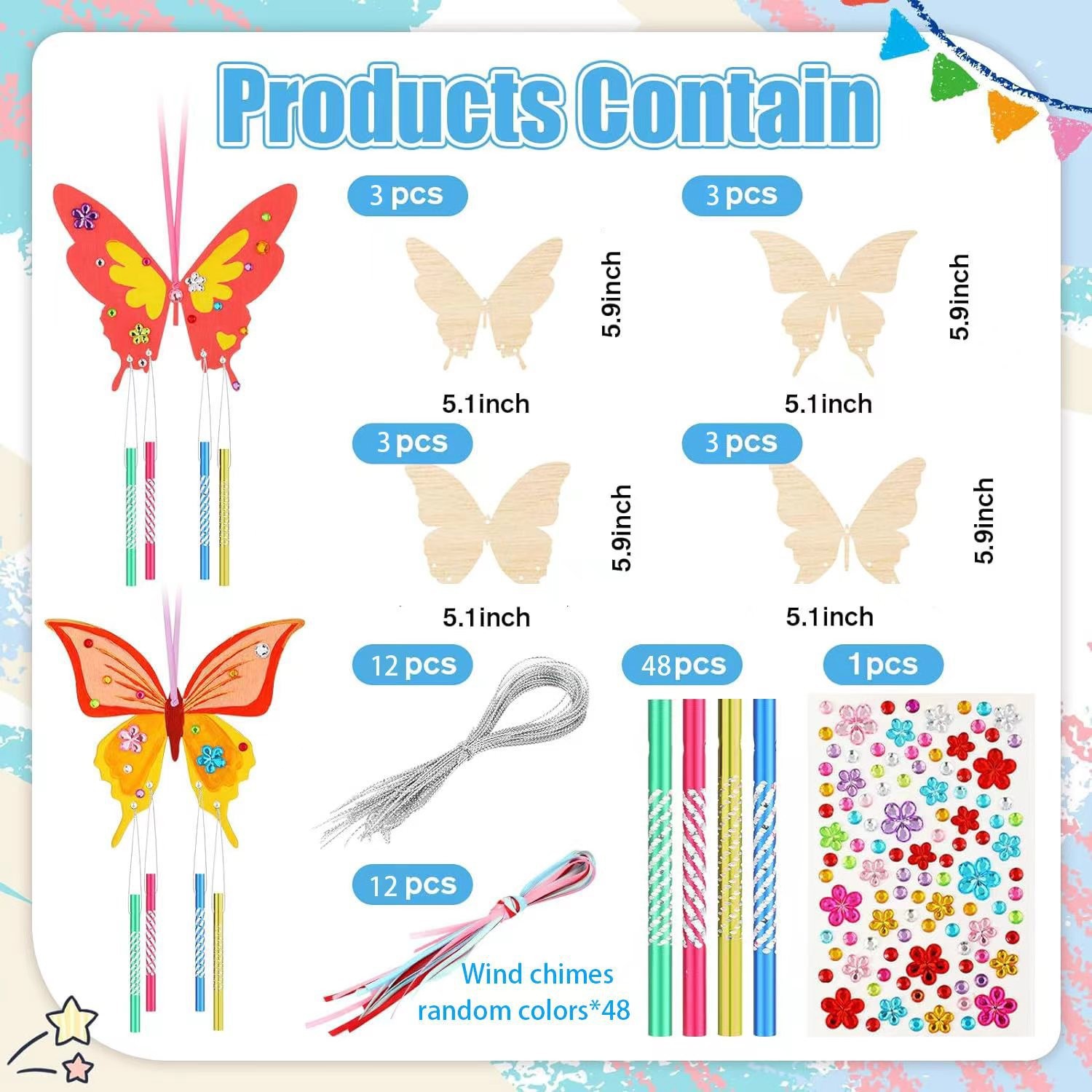 8 3d butterflies +32 wind chimes + silver string + diamonds