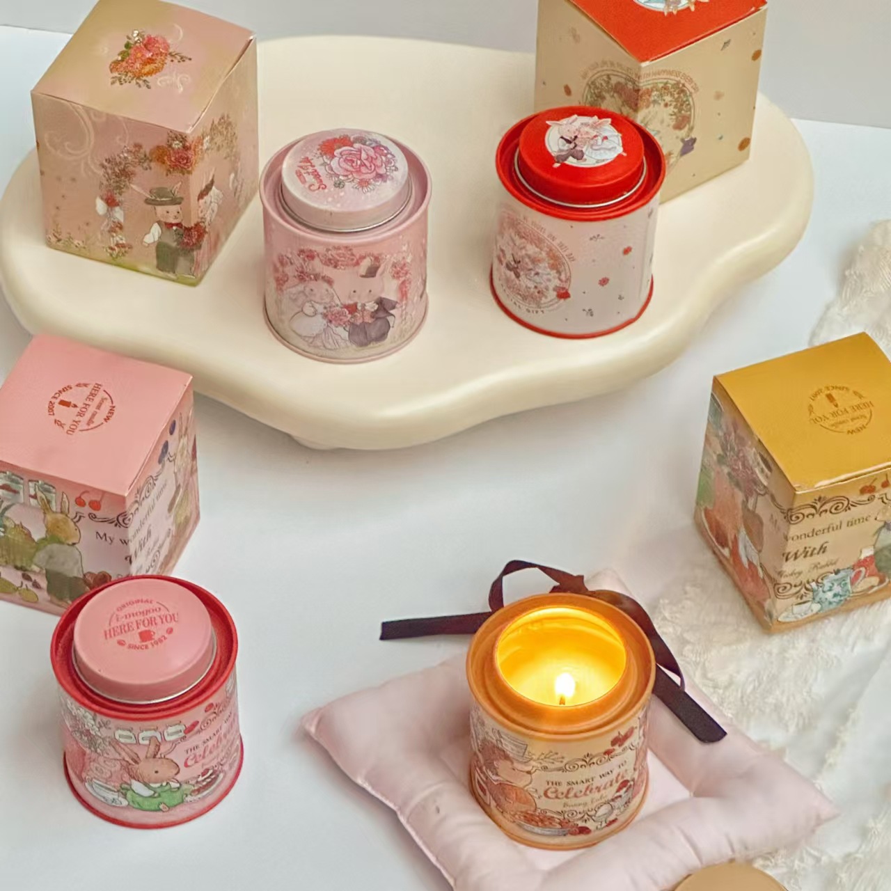 cream rabbit pink jar-lavender