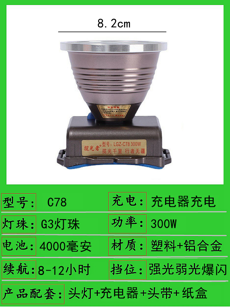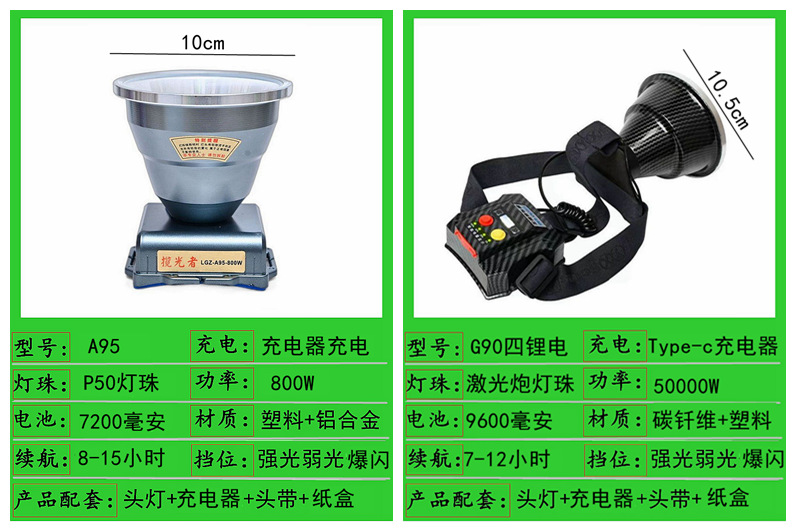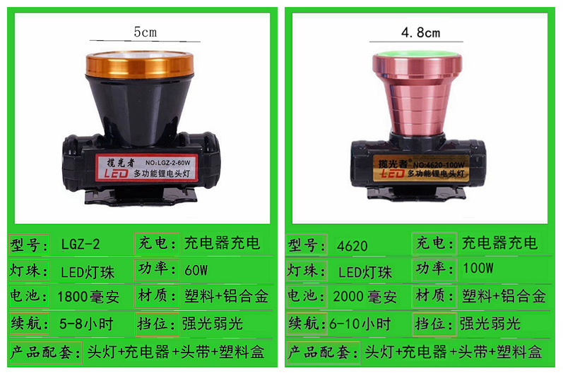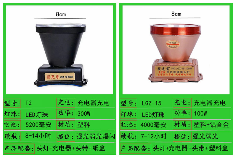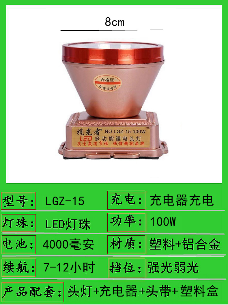 lgz-15-100w dual battery 8cm headlamp