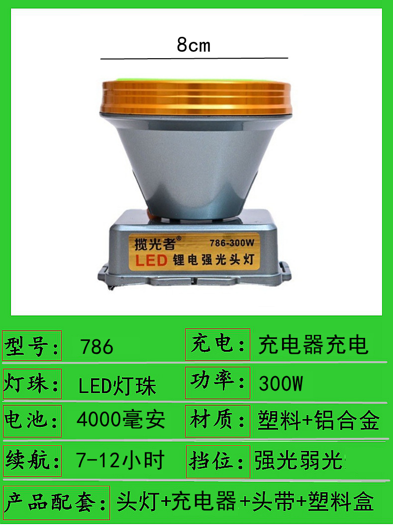 786-200w dual battery 8cm headlamp