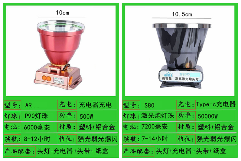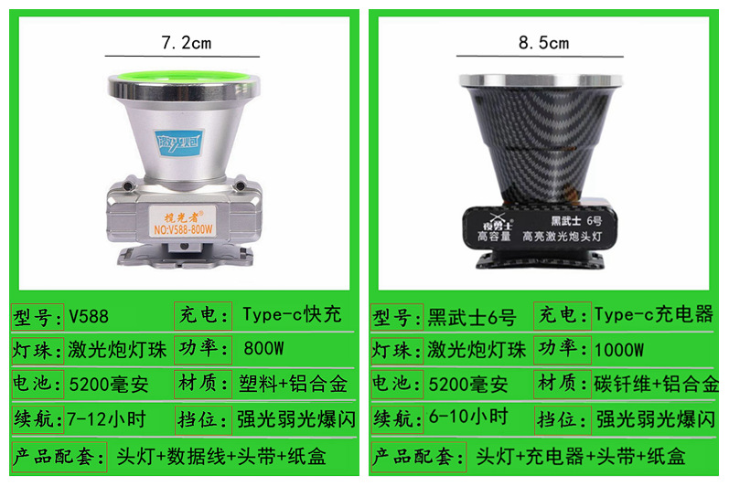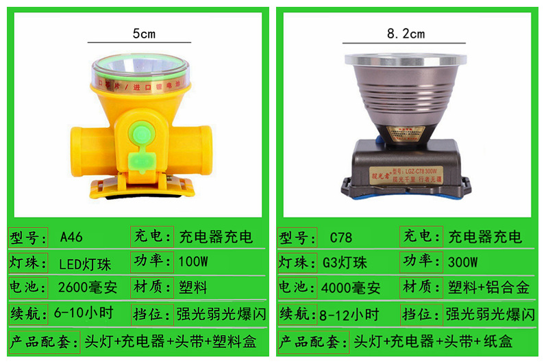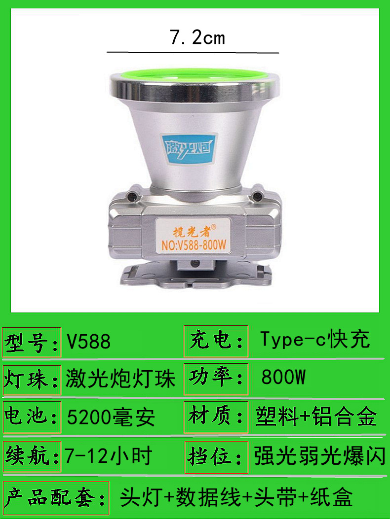 588-800w dual battery 7.2cm headlamp