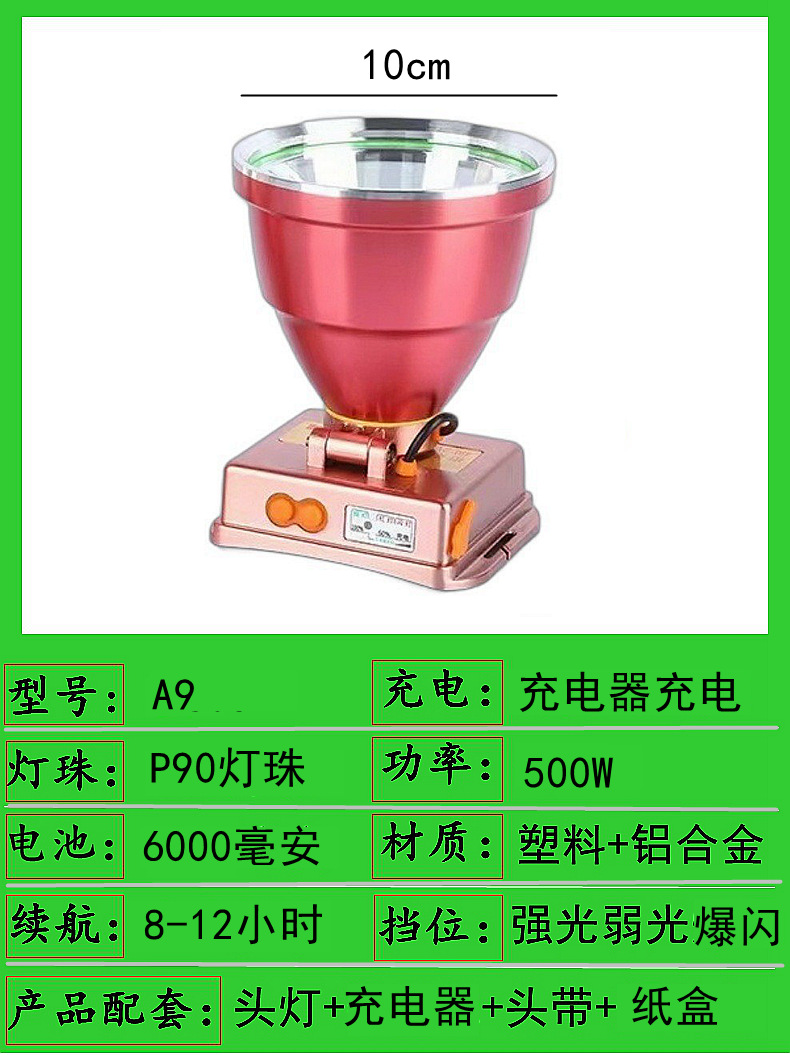 a9-500w three batteries 10.5 headlamp