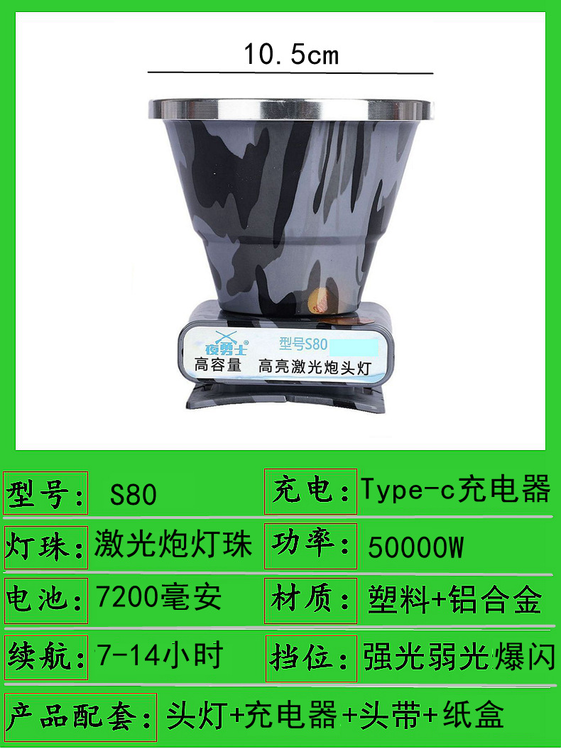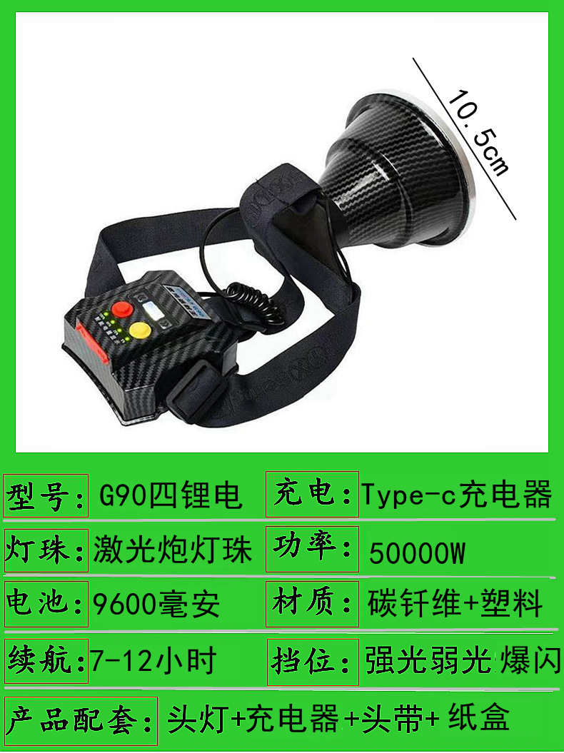 s80-50000w three batteries 10.5 headlamp
