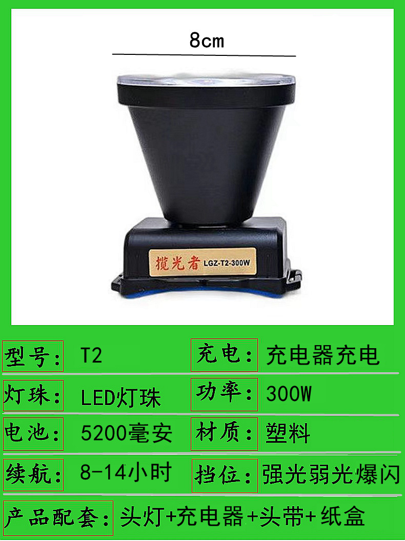 t2-300w dual battery 8cm headlamp