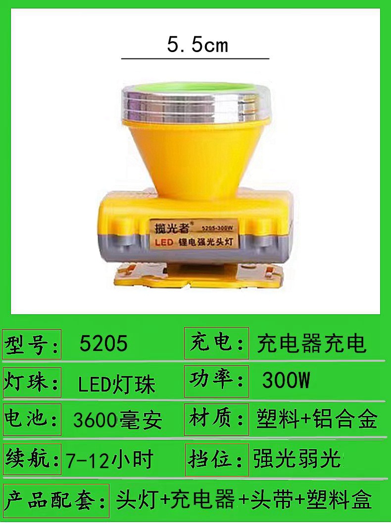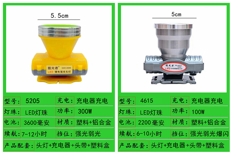 520-300w dual battery 5.5cm headlamp