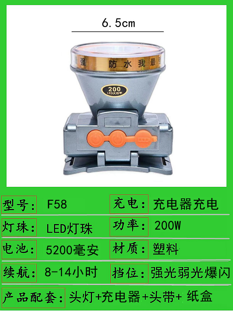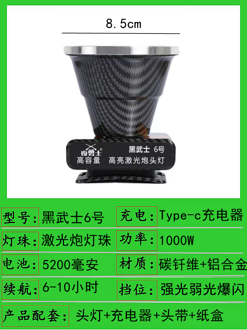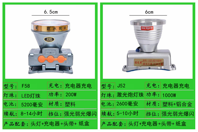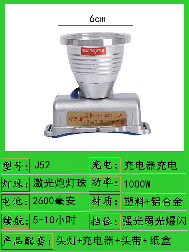j52-1000w single battery 6cm headlamp