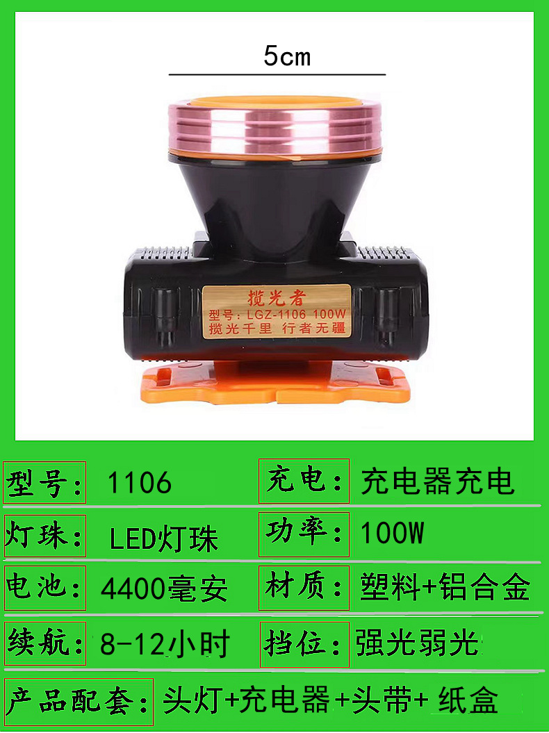 1106-100w dual battery 5cm headlamp