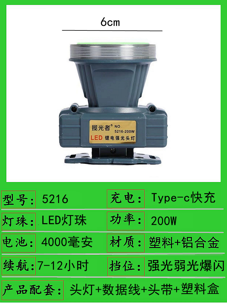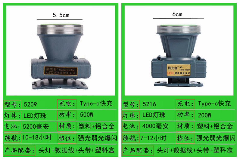 5216-200w dual battery 6cm headlamp