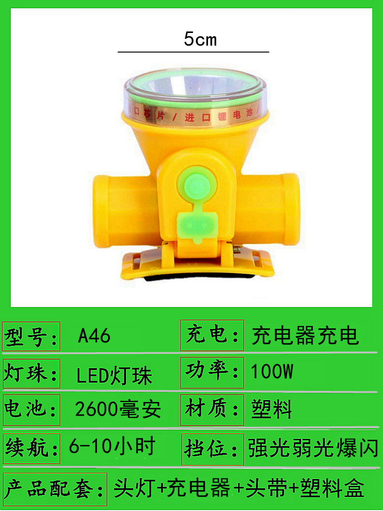 a46-100w single battery 5cm headlamp