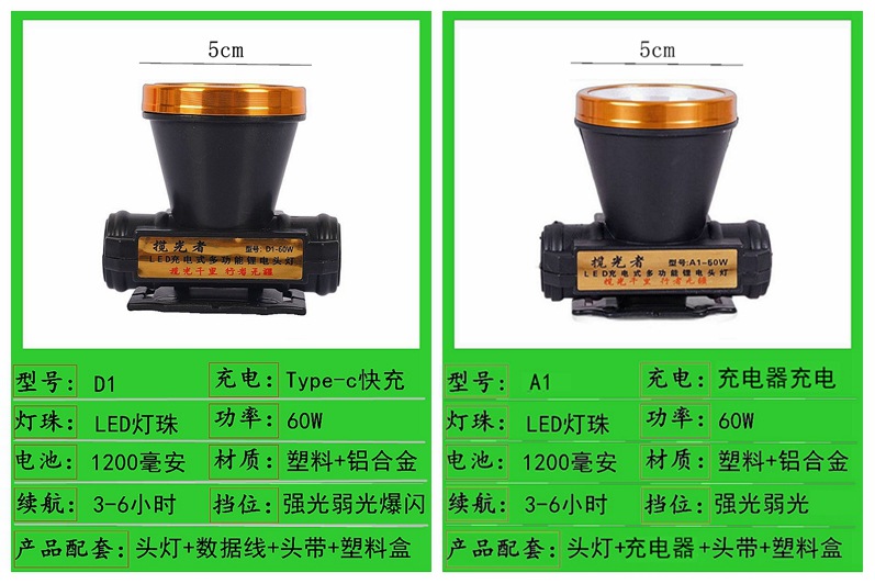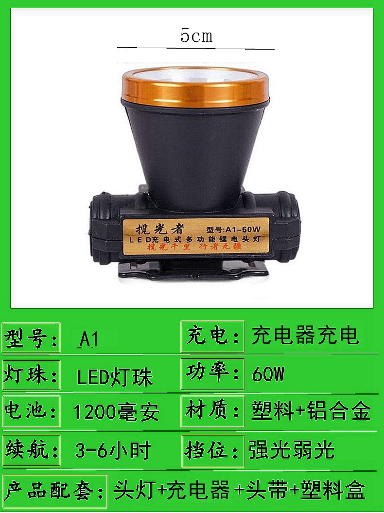 a1-60w single lithium battery 5cm headlight