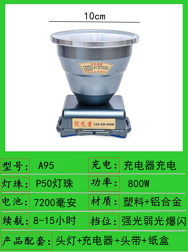 a95-800w three batteries 10cm headlight