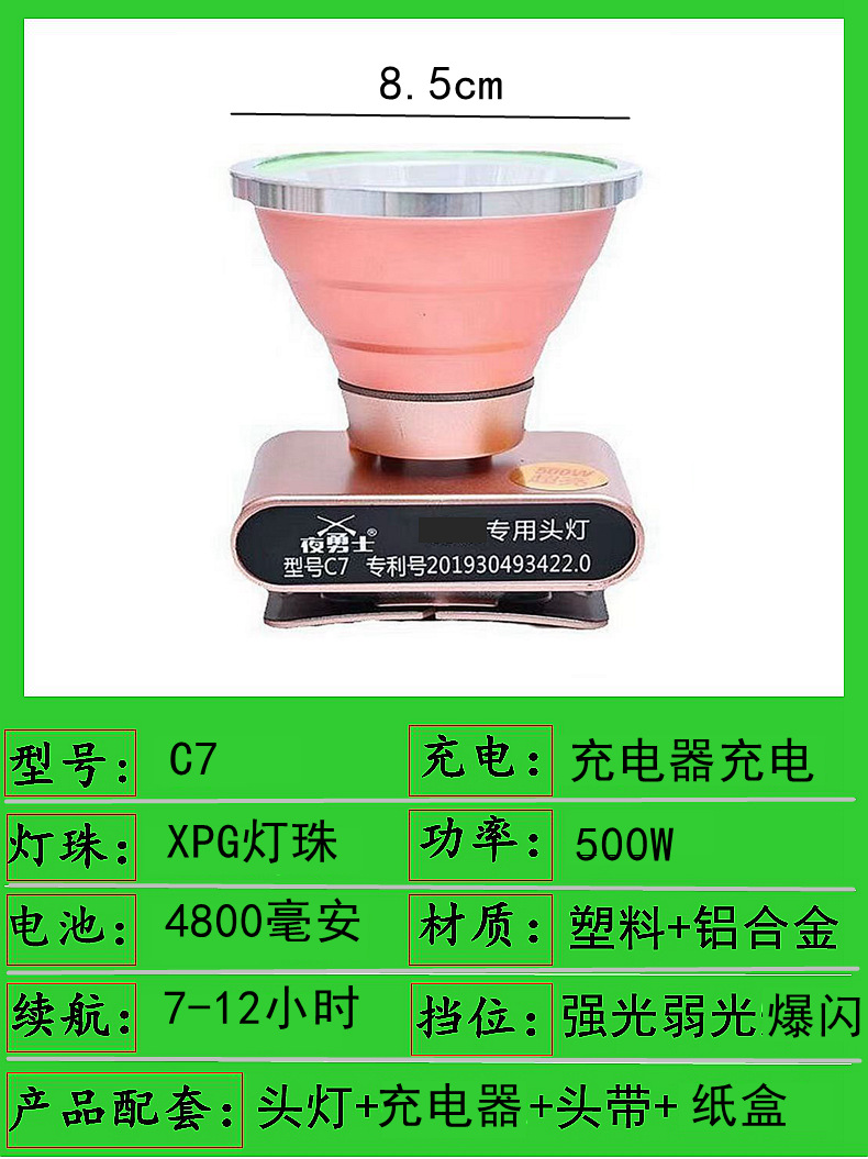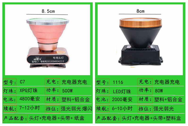 c7-500w dual battery 8.5cm headlamp