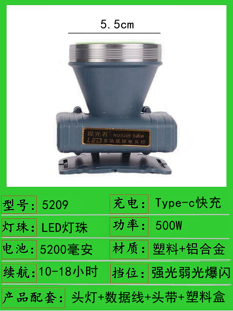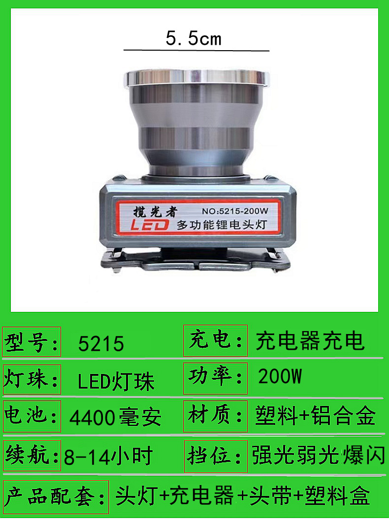 5215-200w dual battery 5.5cm headlamp
