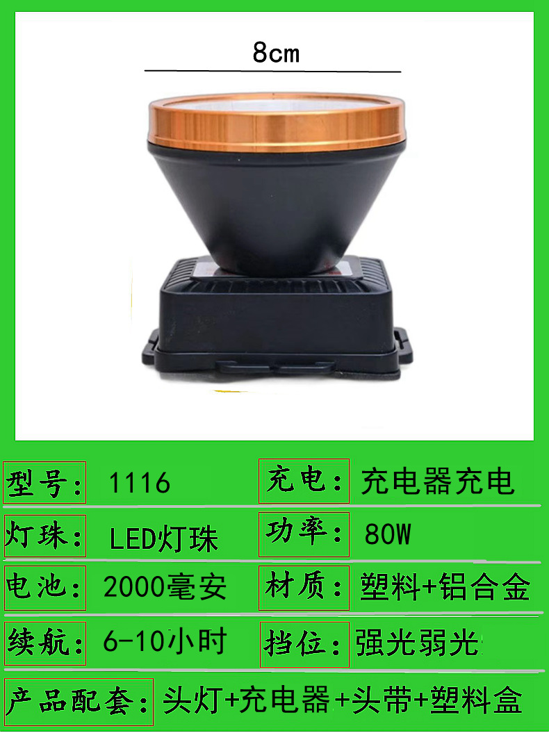 1116-80w single battery 8cm headlamp