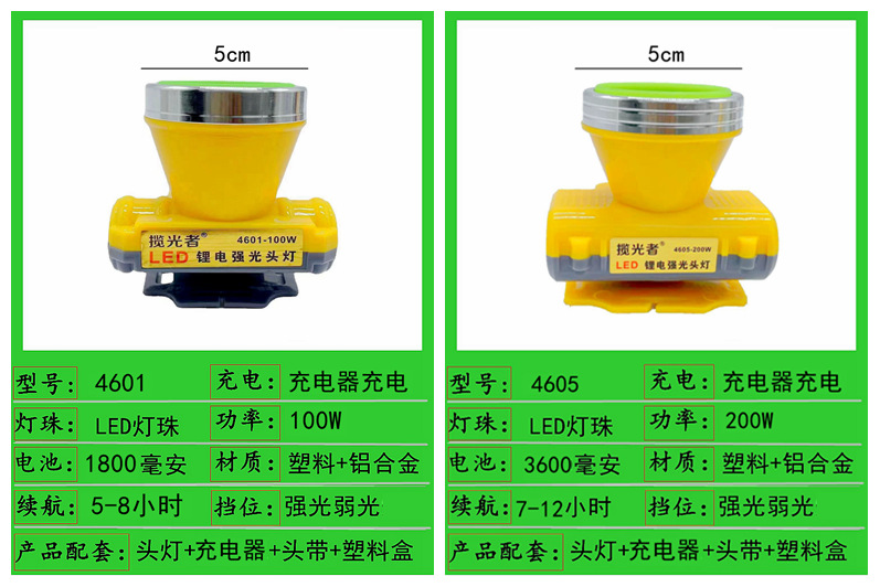4601-100w single battery 5cm headlamp