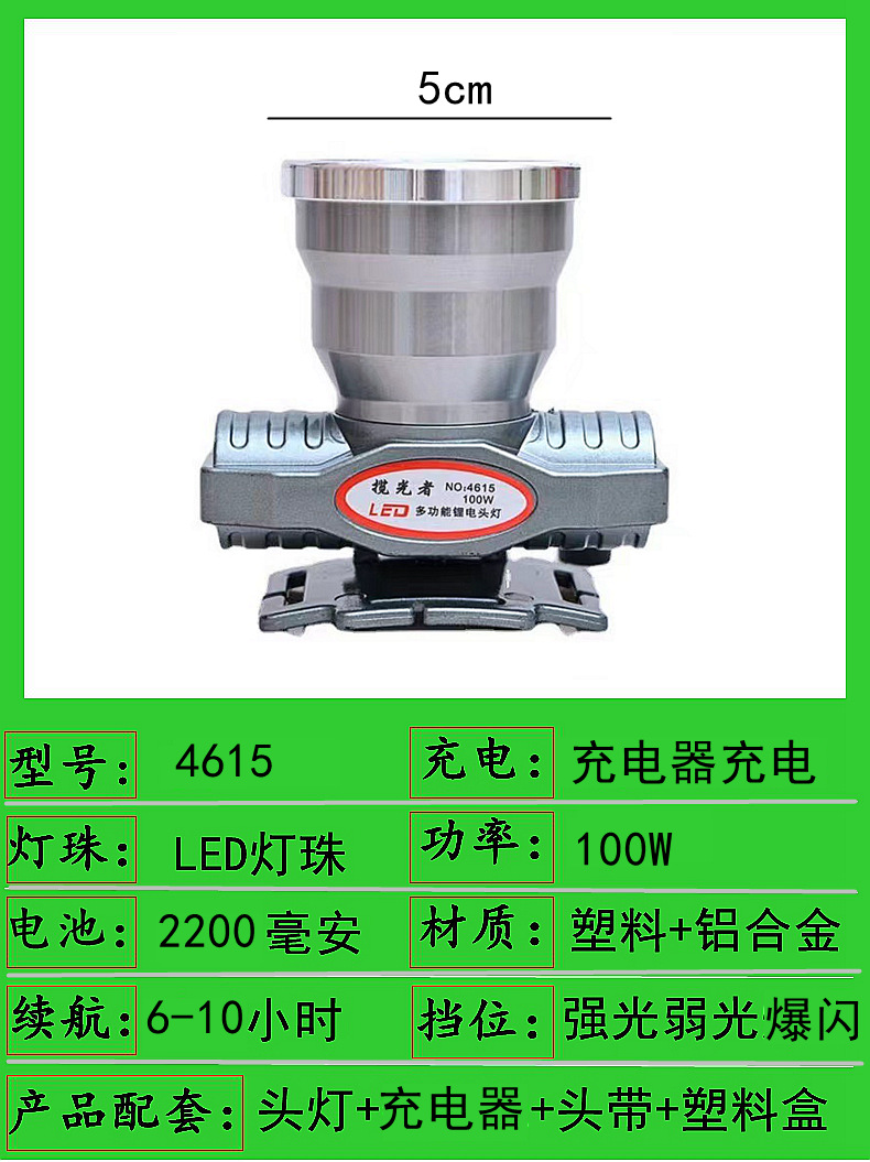 4615-100w single battery 5cm headlamp