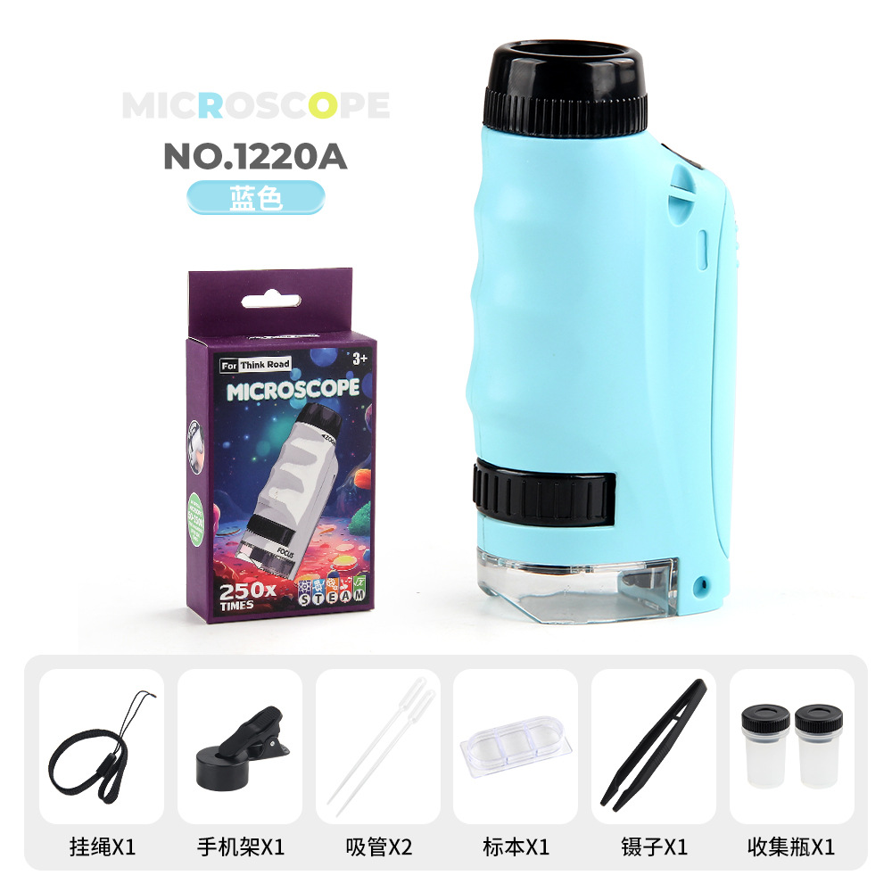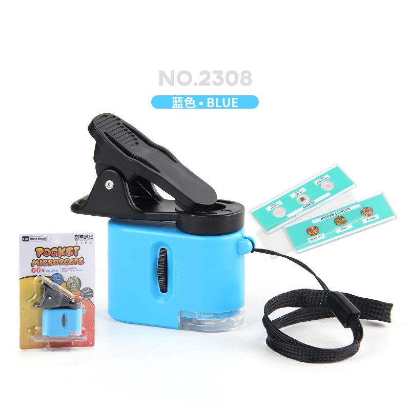 1220a blue single handheld microscope + small phone holder 92g