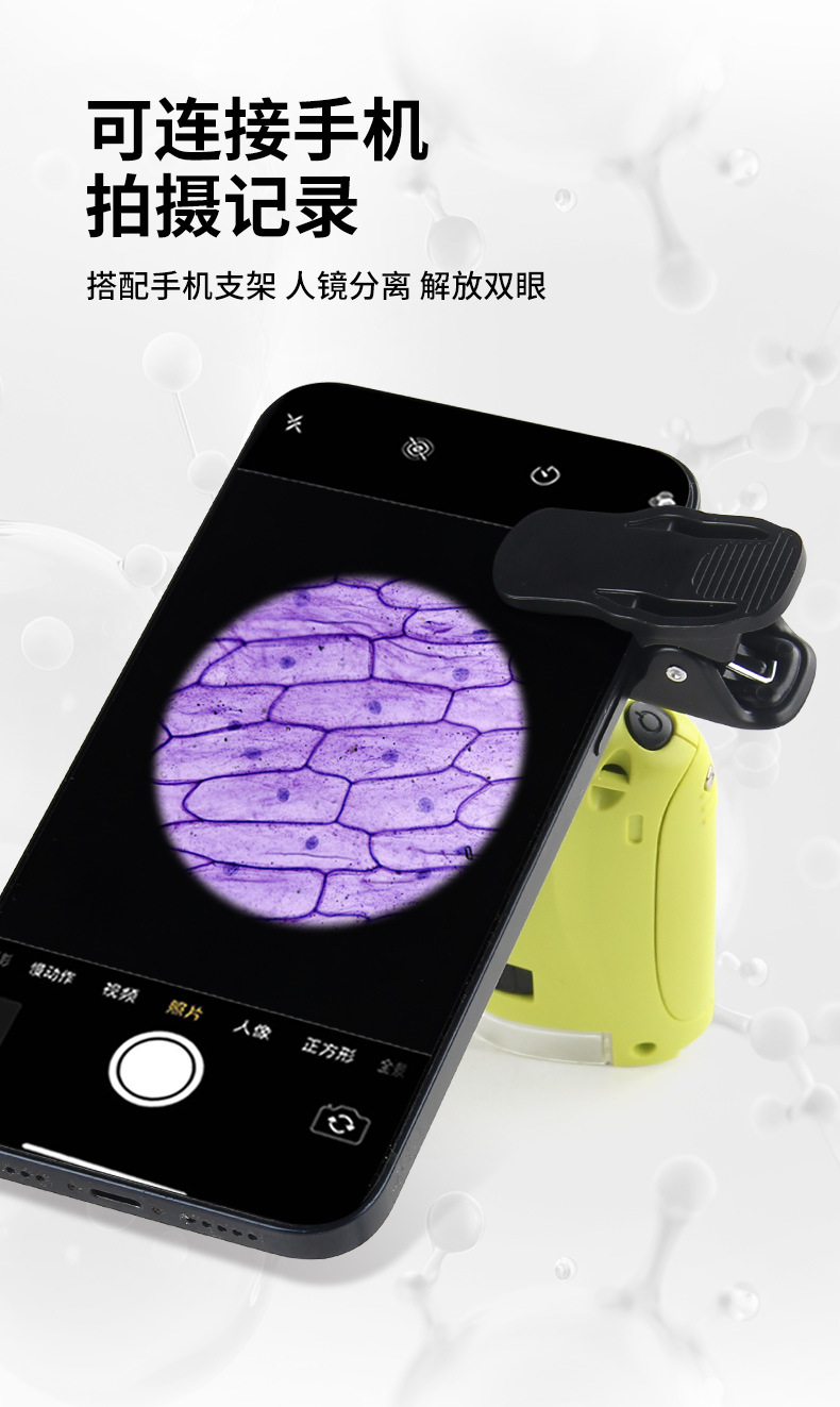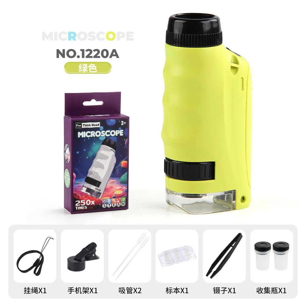 1220a green single handheld microscope + small phone holder 92g