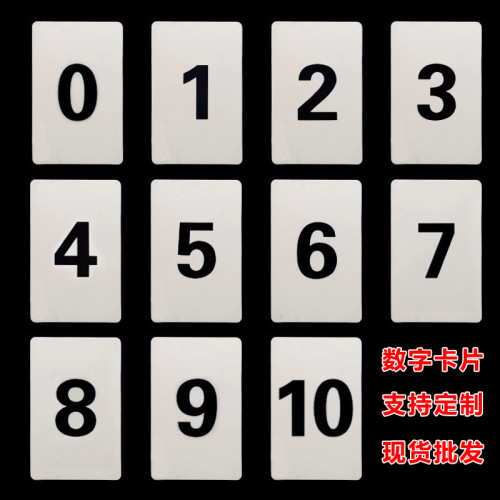 Direct from the manufacturer: digital cards, plastic number plates, material: PP plastic, thickness 0.6mm, size 5.4*8.6CM, minimum order quantity of 10 pieces per digit. Also available for custom-made in other specifications.