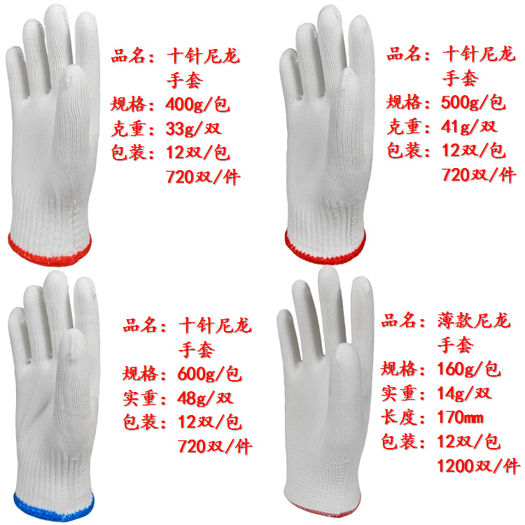 600g ten needle nylon gloves