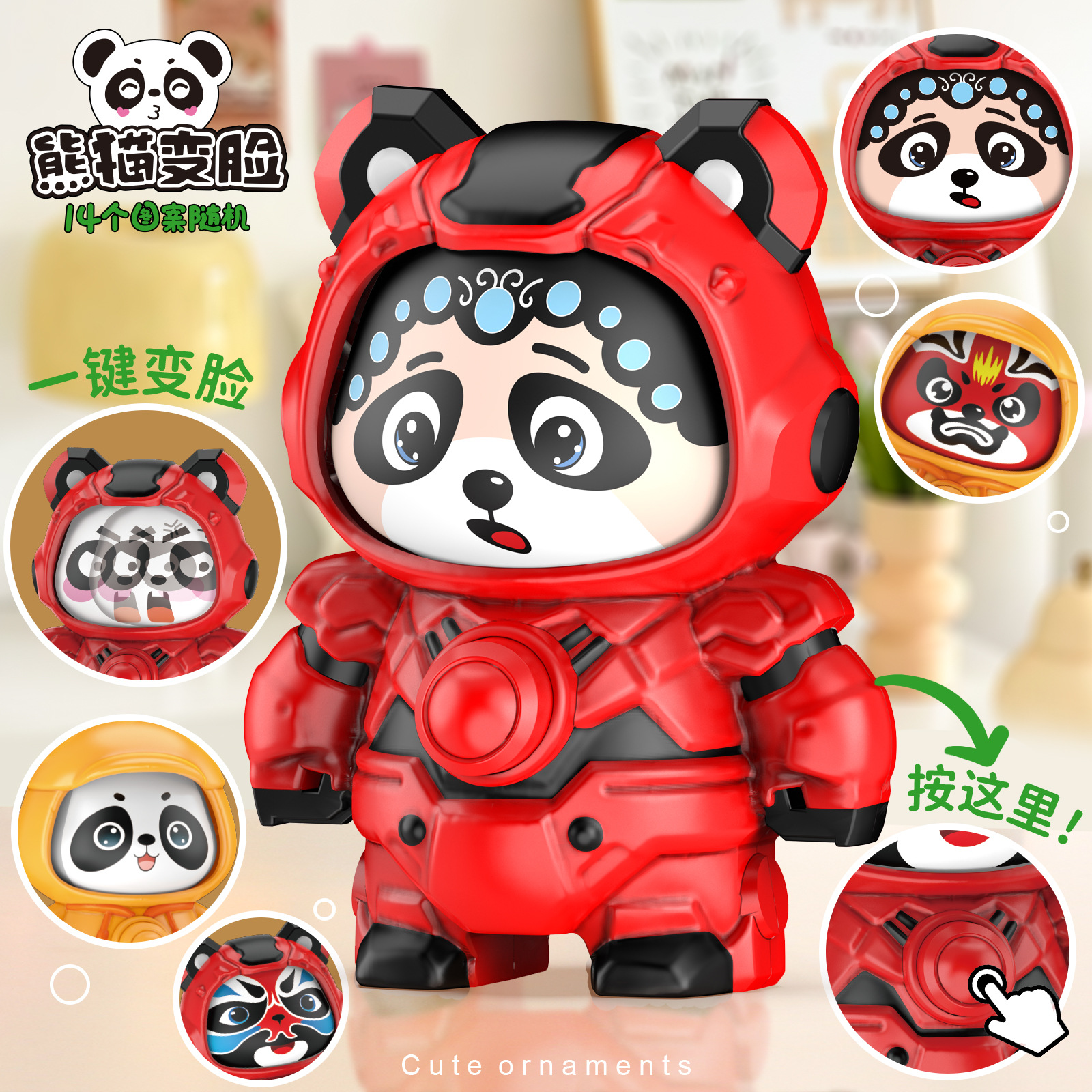 red mechanical face-changing panda