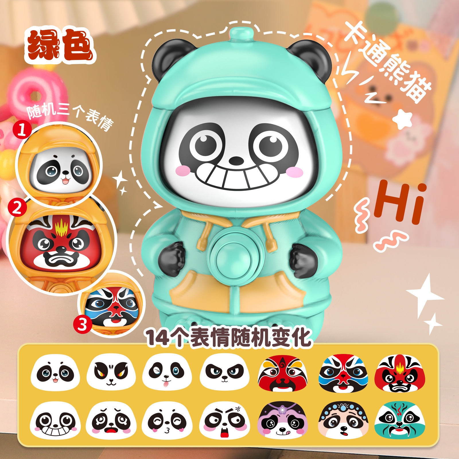 green cartoon face-changing panda