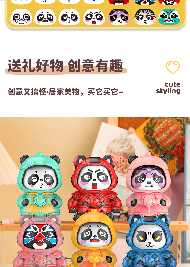blue mechanical face-changing panda