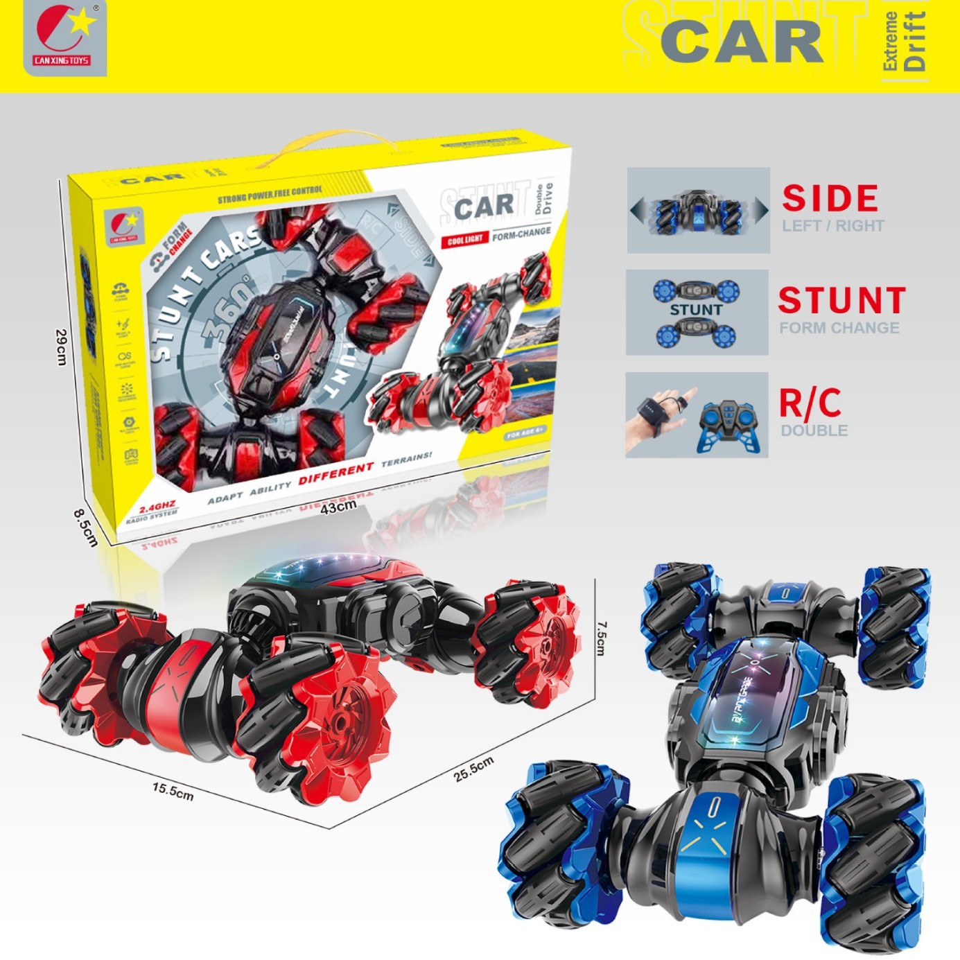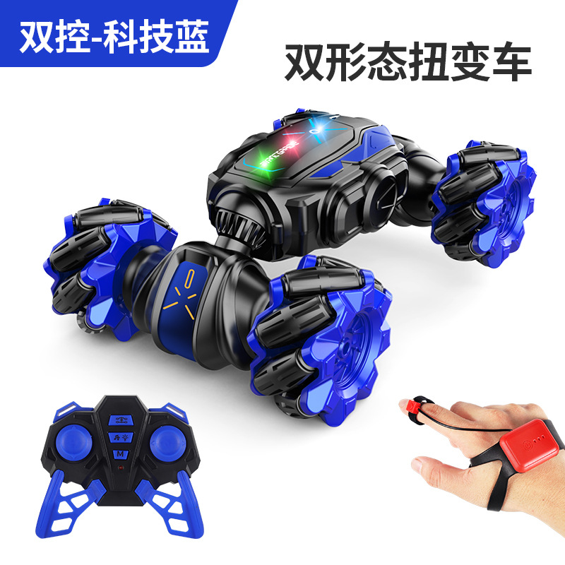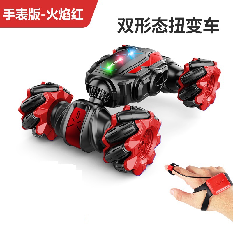 A watch with remote control and gravity sensing, dual-mode control, forward and backward movement, left and right rotation, side-stepping, drifting, twist transformation, lighting and music, one-button demonstration;