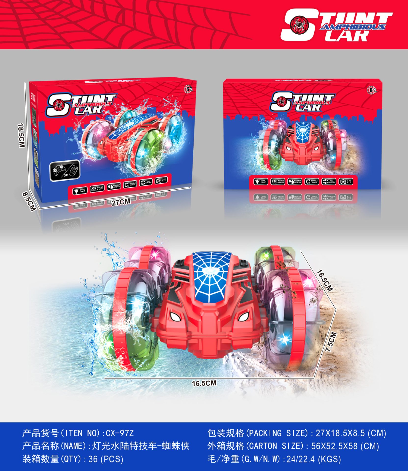 light water and land stunt car-spider-man