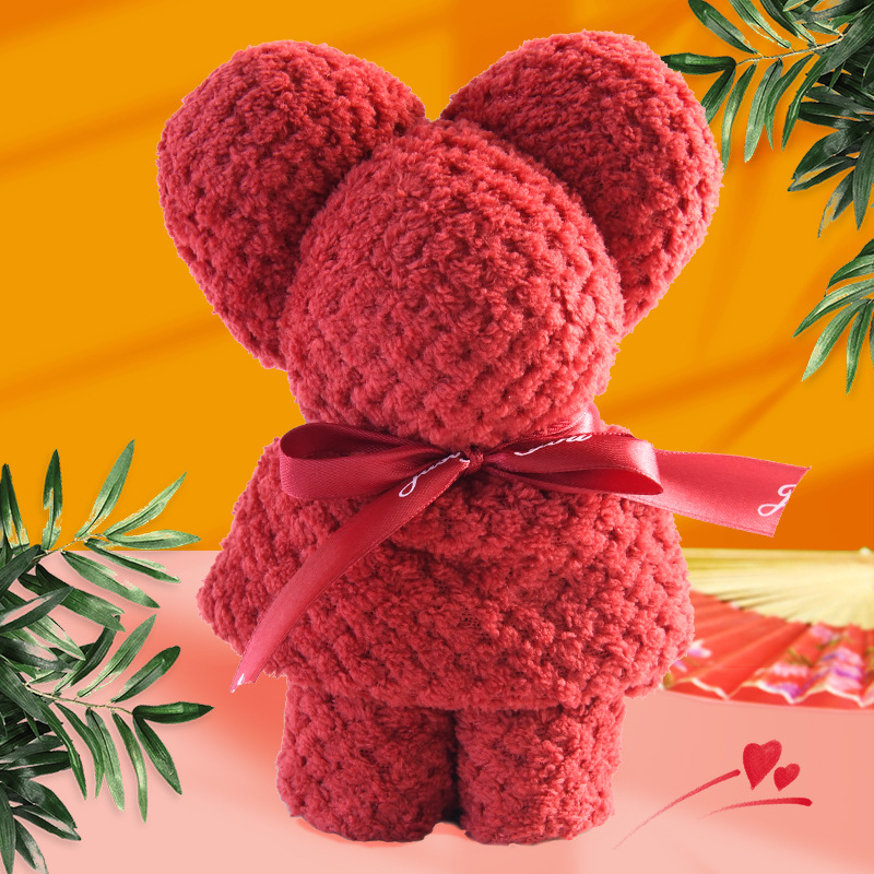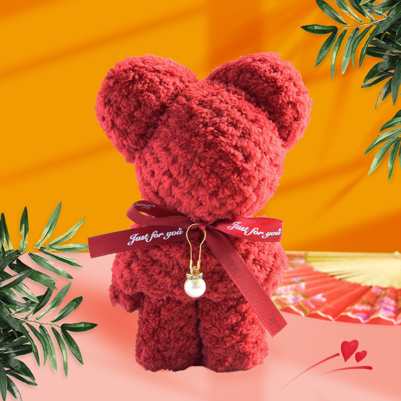 wine red pineapple lattice bear (30*30 towel) + ins self-adhesive handbag