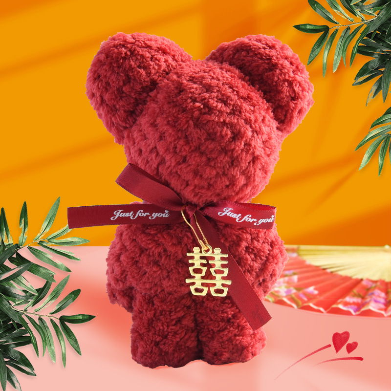 wine red pineapple lattice bear (30*30 towel) + xi character