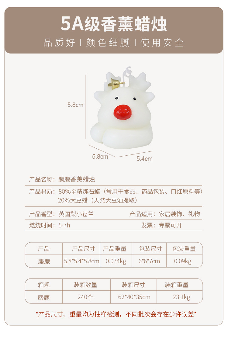 christmas elk scented candle white (fragrance: english pear freesia)