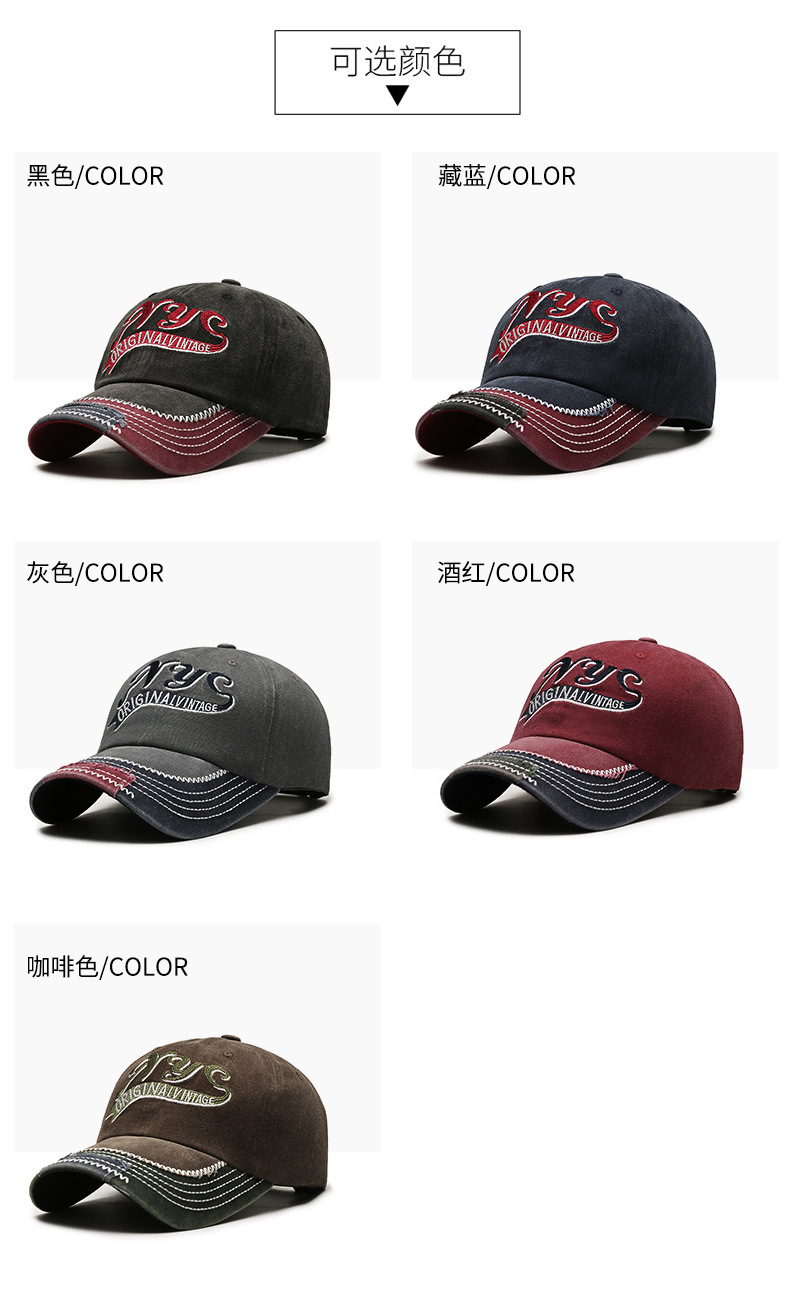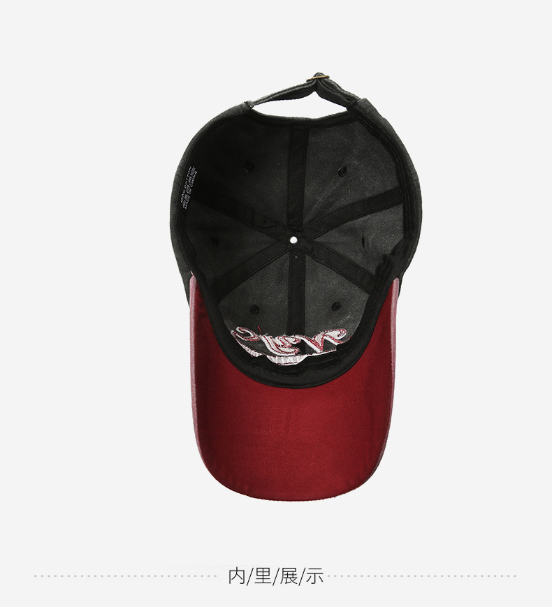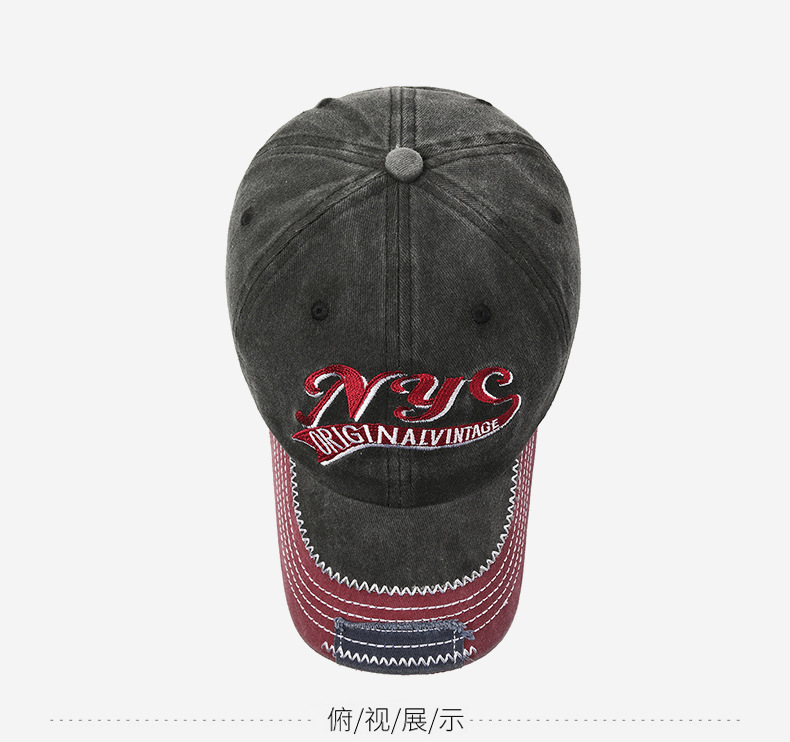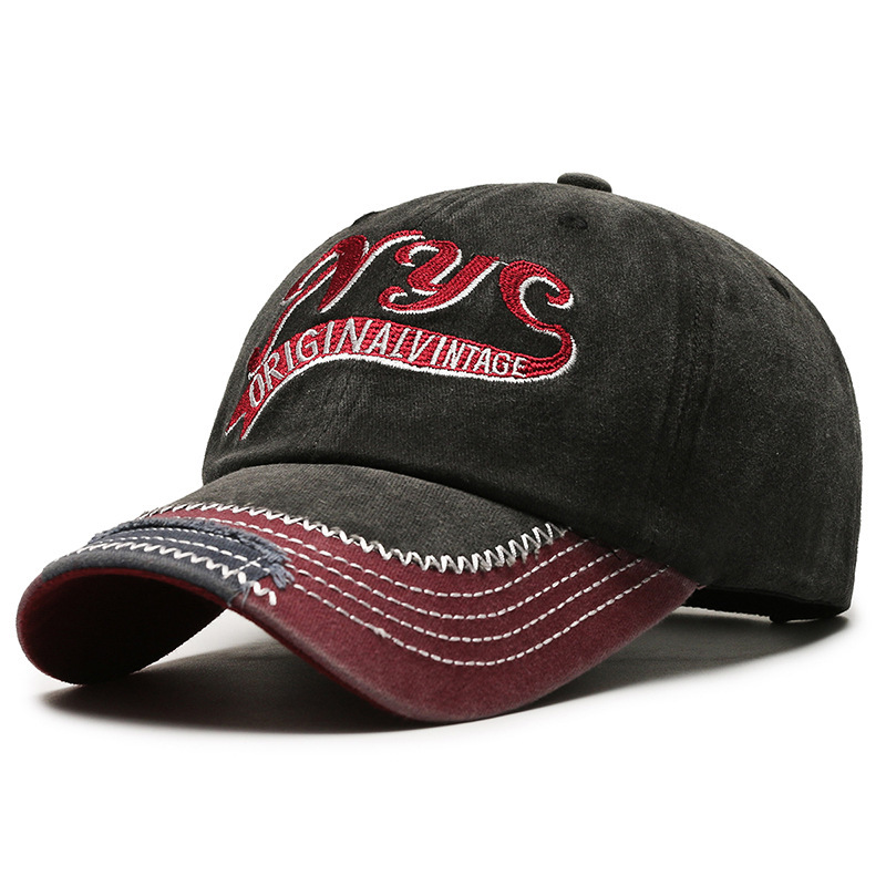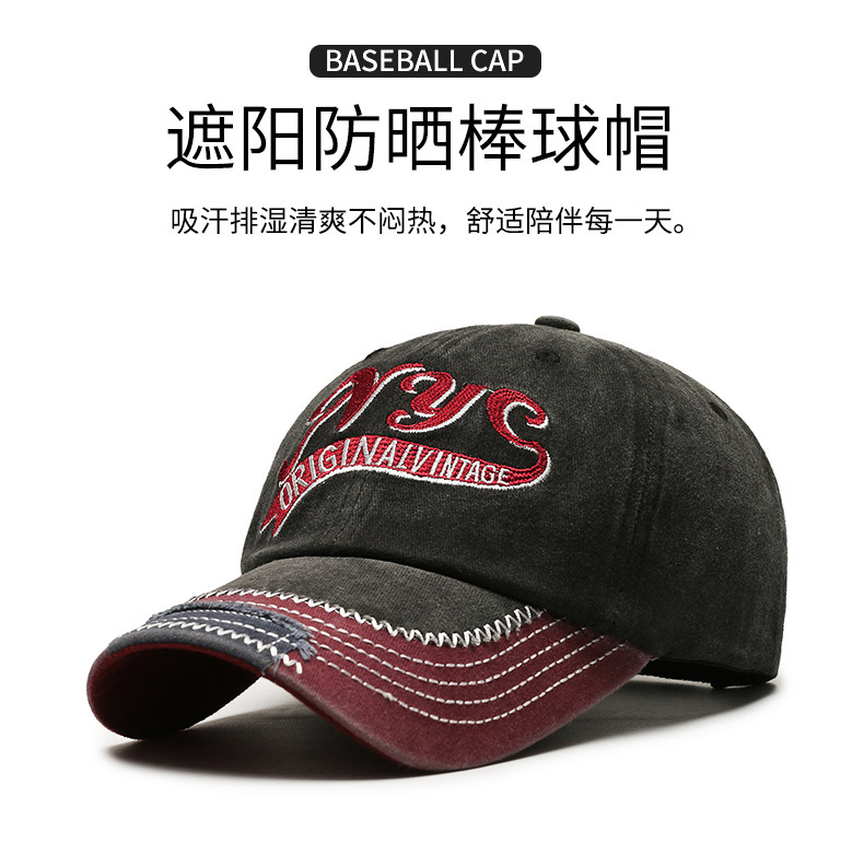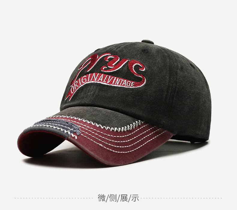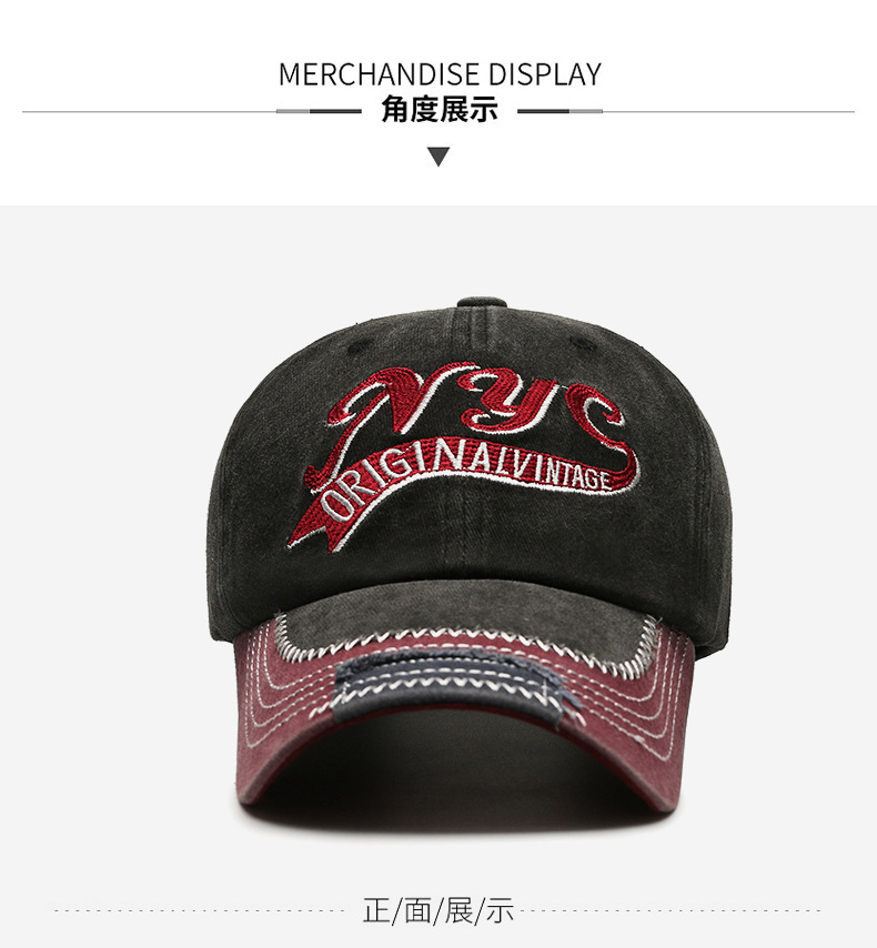 european and american retro distressed hip hop peaked cap embroidered english logo label foreign trade washed long brim baseball cap cross-border