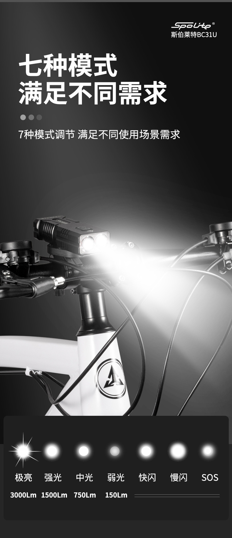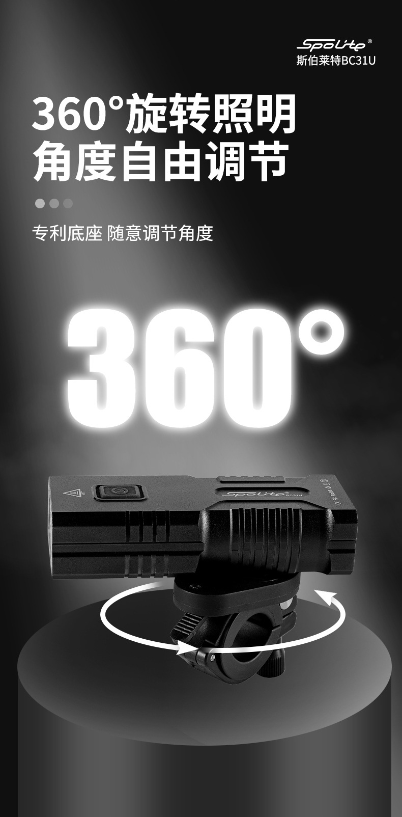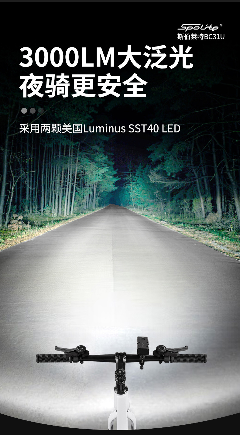 bc31u bright light 3000 lumen power bank charging rotating mountain highway bicycle light