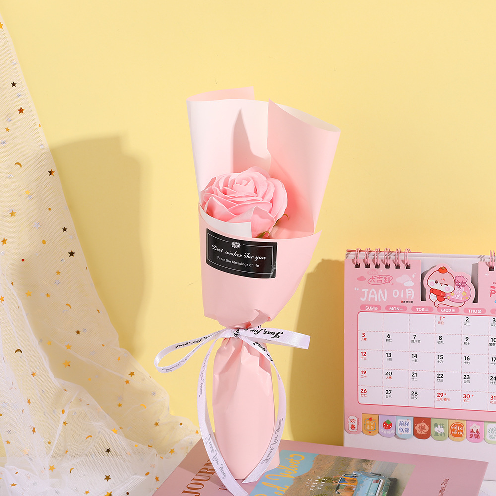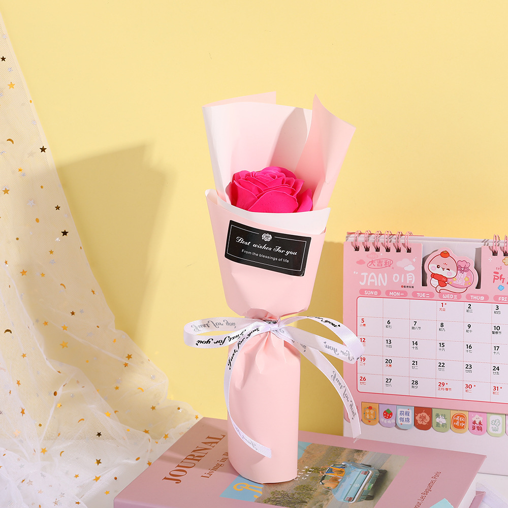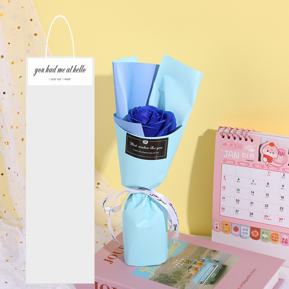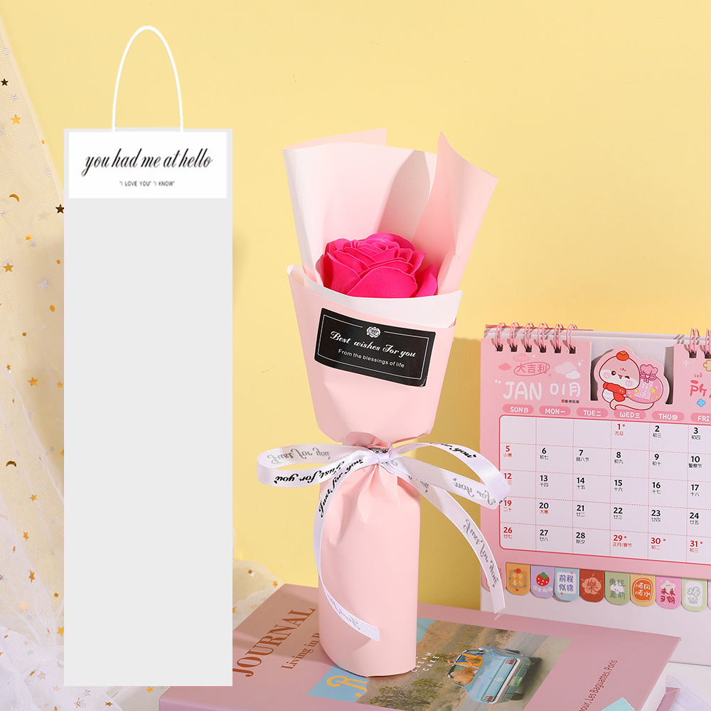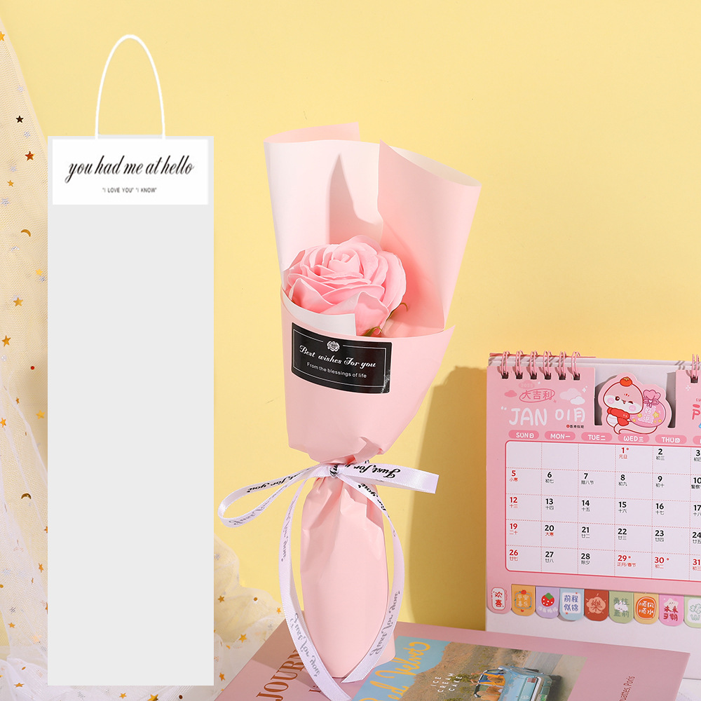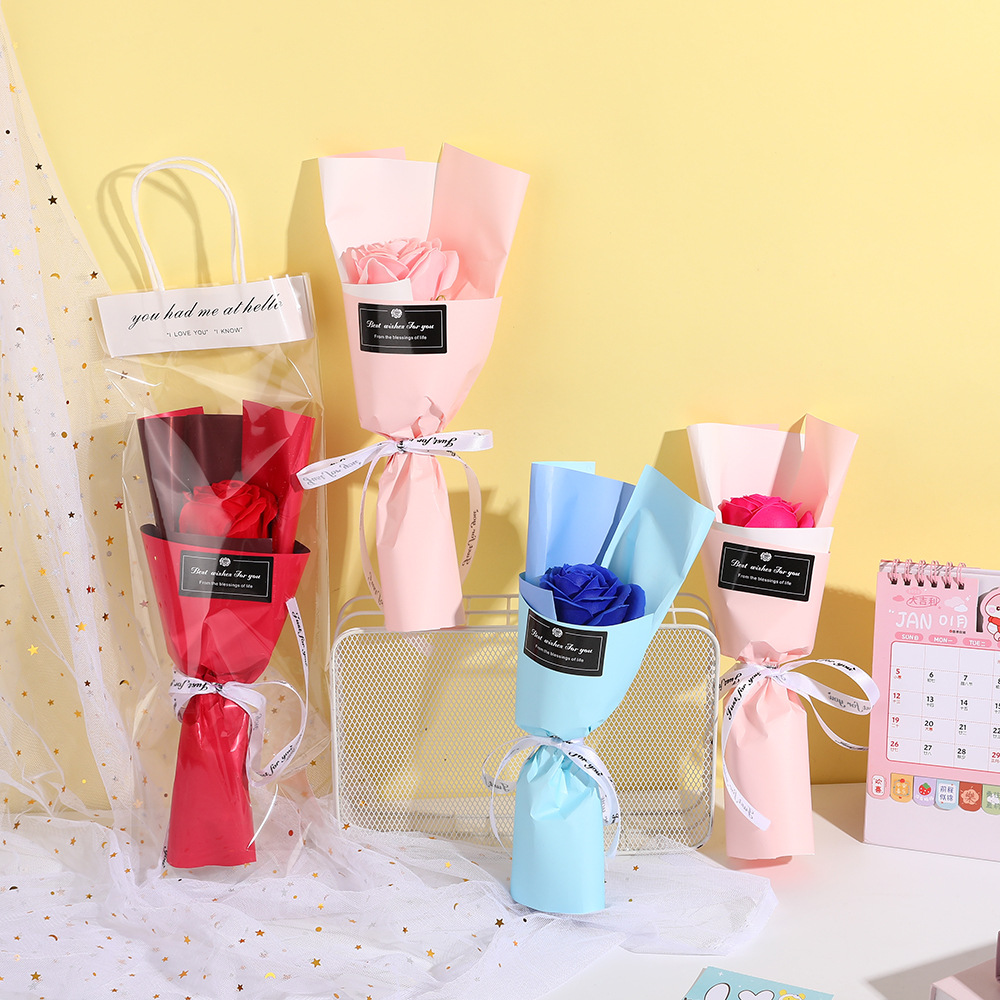 Product size: 14*30cm, product weight: 19g, product material: soap flower, gift bag size: 15*40cm, gift bag weight: 9g, all bouquets are hand-made, the size and weight may vary slightly, if you need to customize, please contact customer service.