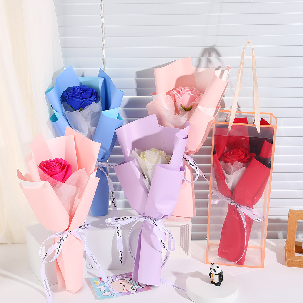 Product size: 13*35cm, product weight: 31g, product material: soap flower, gift bag size: 13*35cm, gift bag weight: 28g, all bouquets are hand-made, size and weight may vary slightly, if you need to customize, please contact customer service.