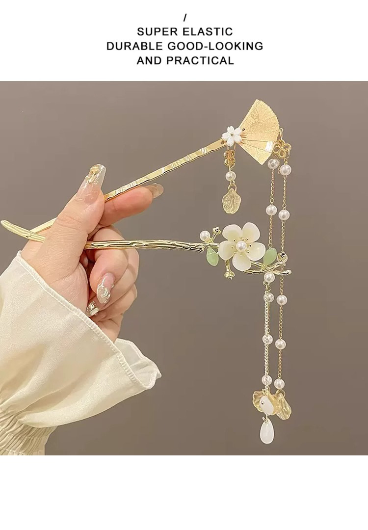 96# magnolia double flower tassel hairpin-gold (bag)#
