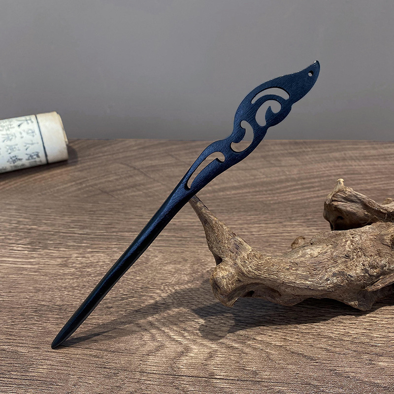 98-phoenix feather shape black wood hairpin-17cm