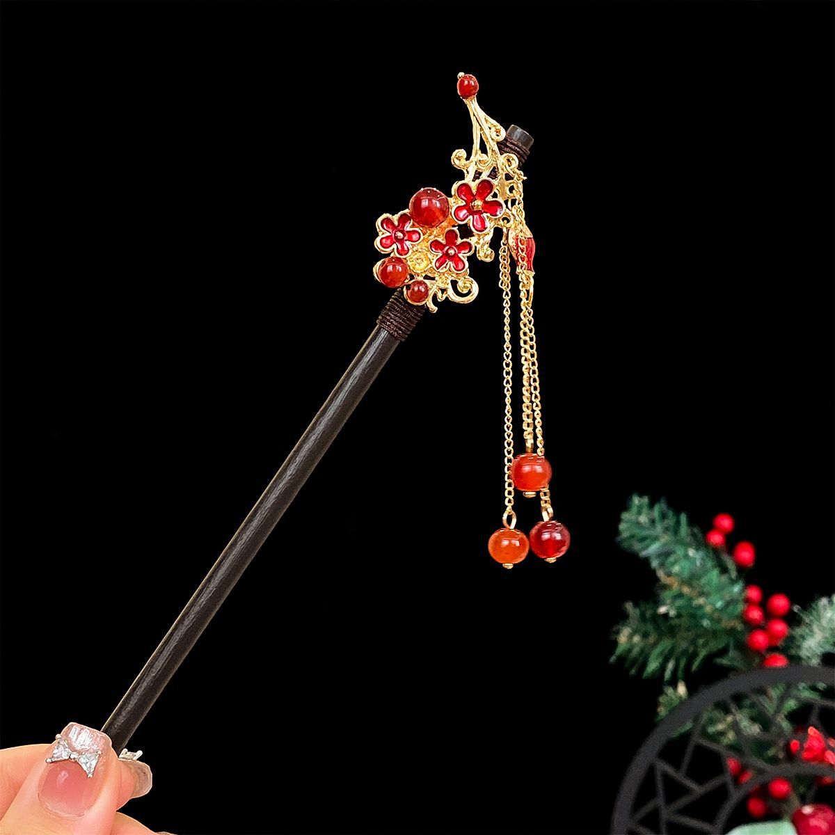10-peach blossom tassel hairpin about 17.5cm