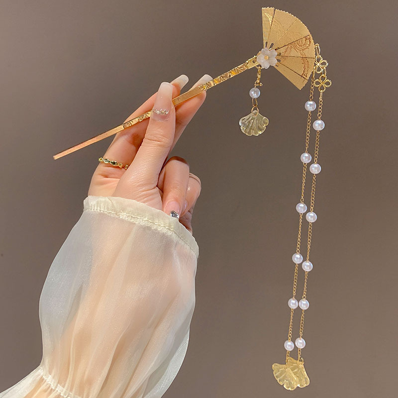 131-folding fan tassel hairpin length about 16.2cm