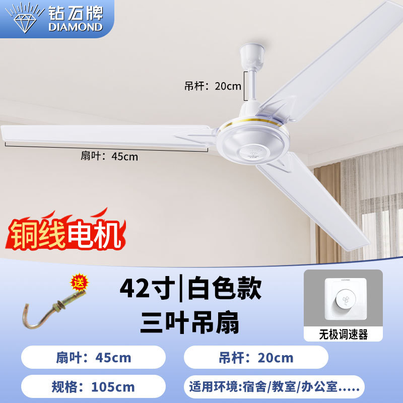 [copper wire] 56-inch white three-leaf hanging king {double five-gear remote control}
